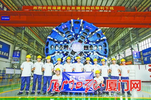 ▲昨日下午,由廈工中鐵重型機(jī)械有限公司制造的福建首臺(tái)雙模盾構(gòu)機(jī)順利下線。